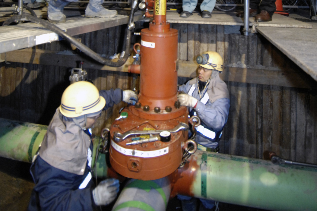 中圧ガス導管の分岐・遮断工事をガスの流れを確保したまま減圧せずに安全に行なう配管施工法です。